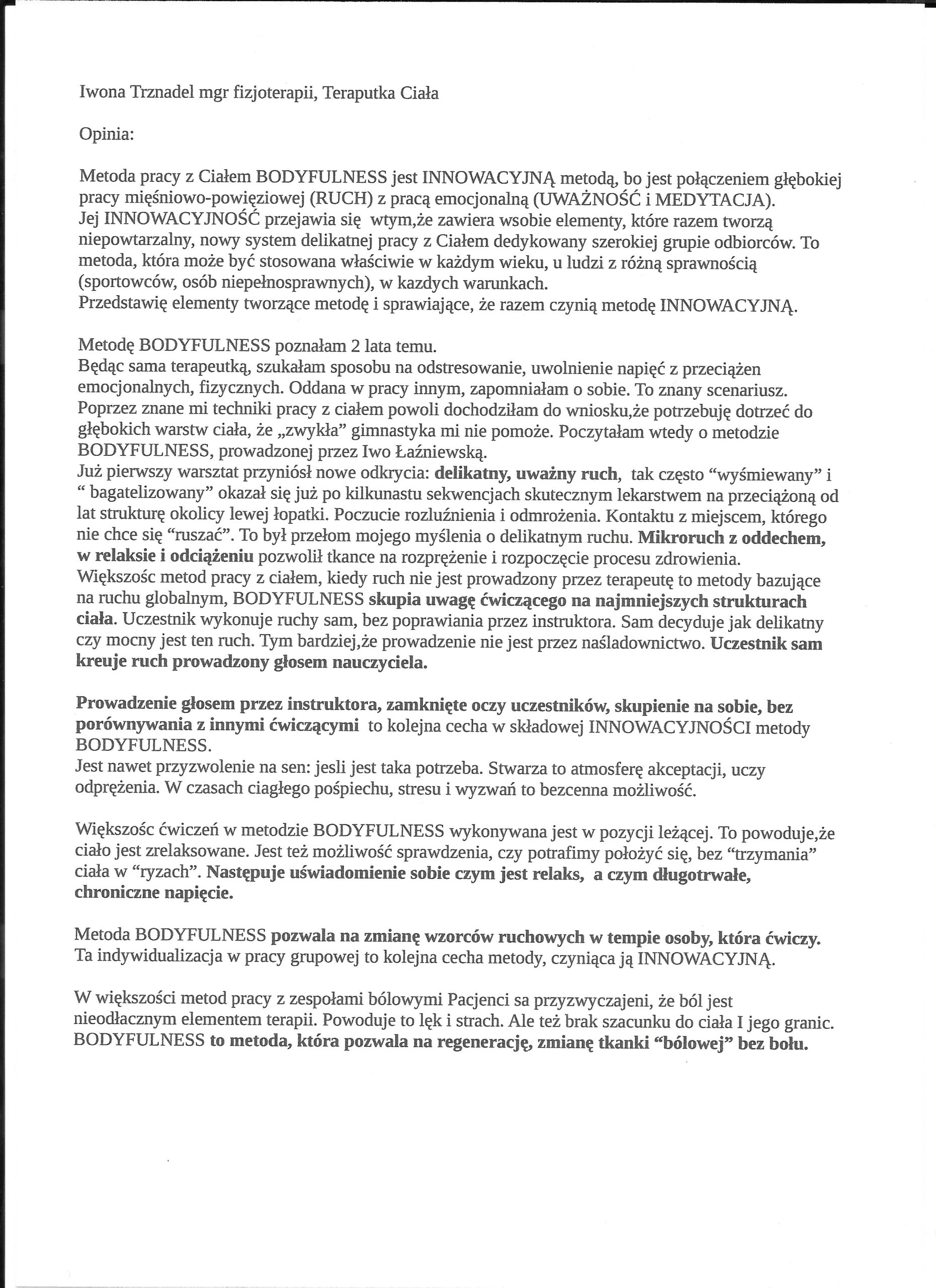 OPINIA dotycząca innowacyjności metody terapeutycznej BODYFULNESS